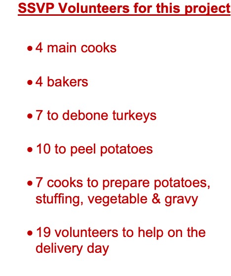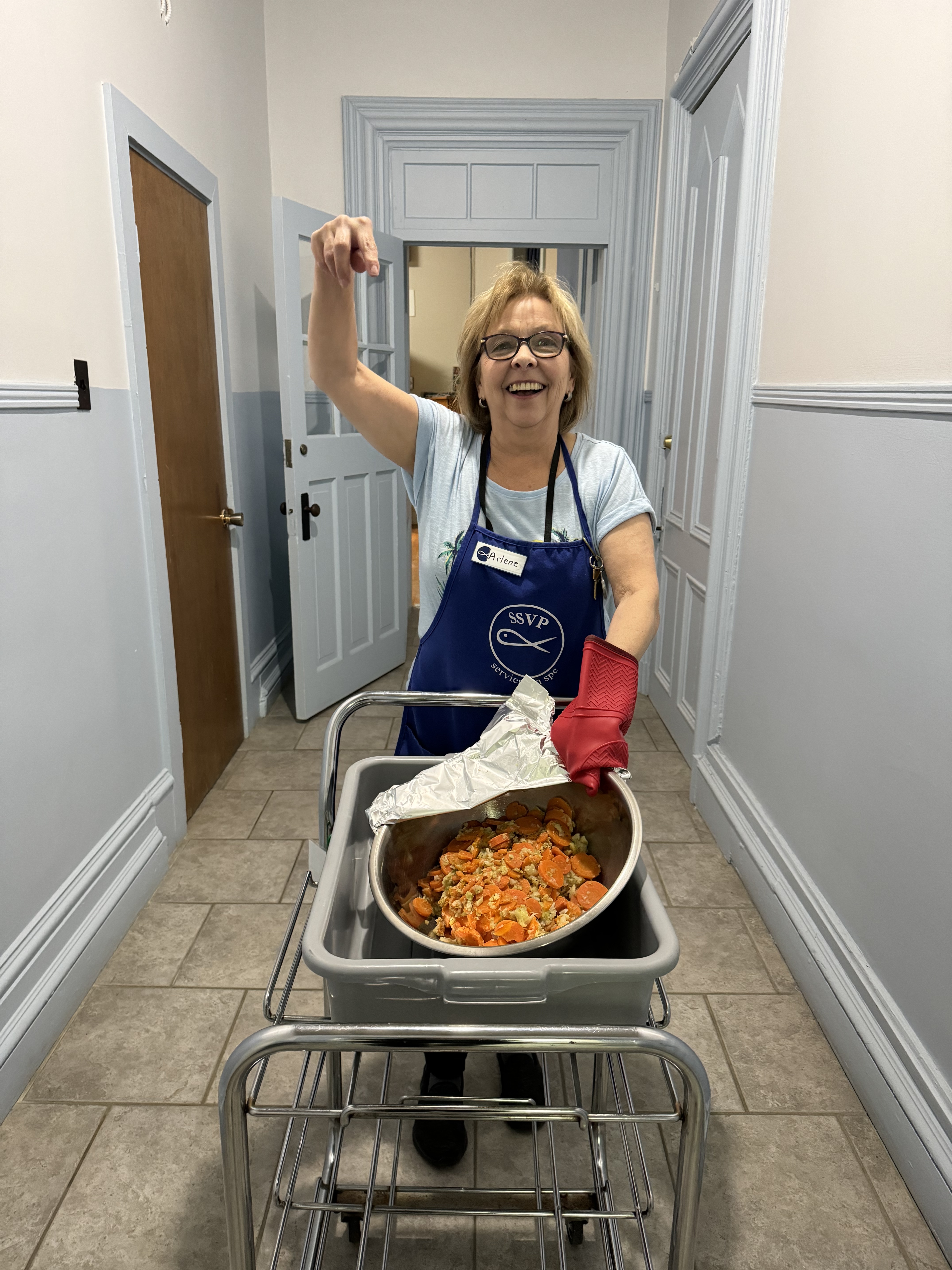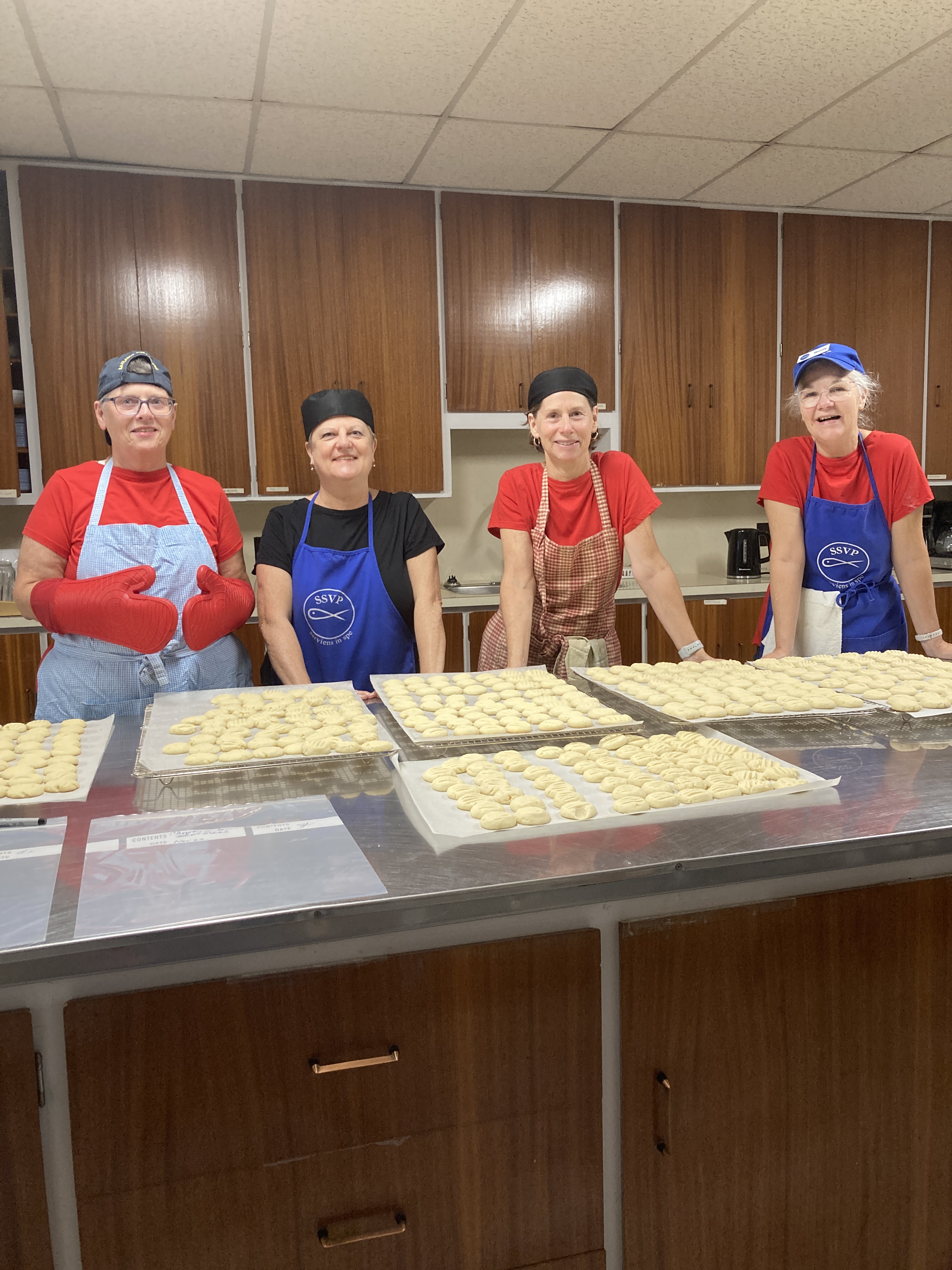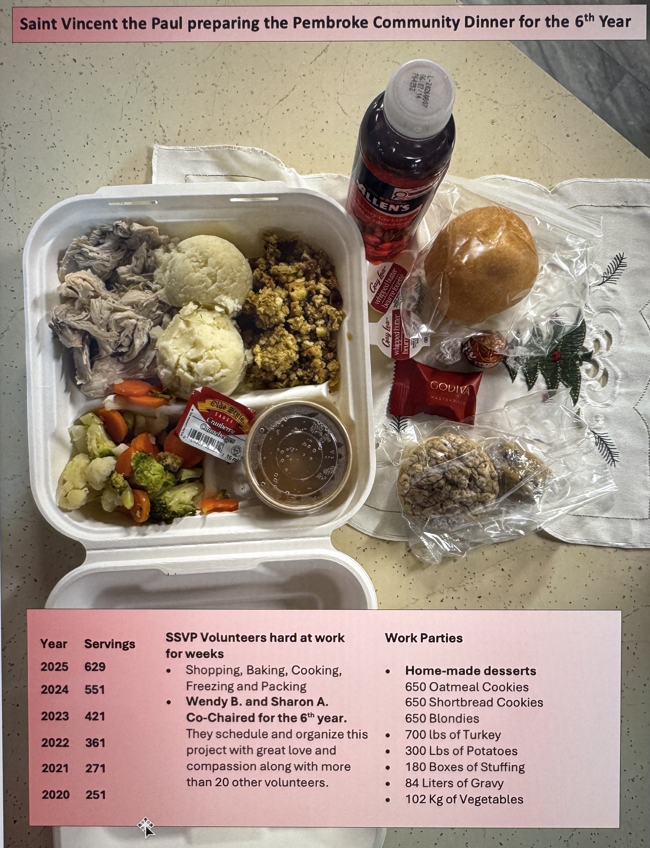 As we celebrate the 6th year of SSVP preparing the community dinner, we reflect on the growth and transformation that this event has inspired in our community. Each year, we gather to not only share a meal but also to build connections among residents, foster a spirit of togetherness, and support those in need. With the contributions of local businesses and volunteers.